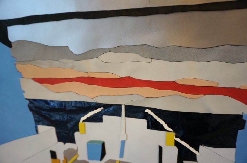 3 éléments (collage, chutes & découpes), cuirs. 80 x 80 cm