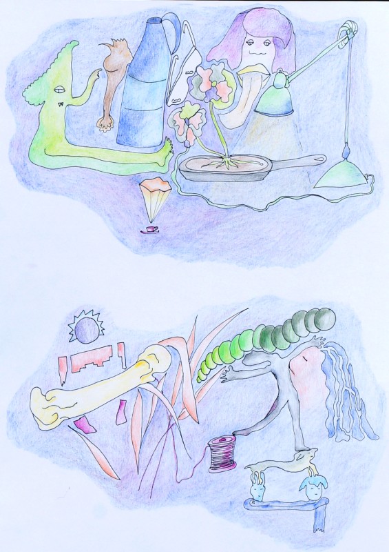 crayon de couleur et feutre sur papier