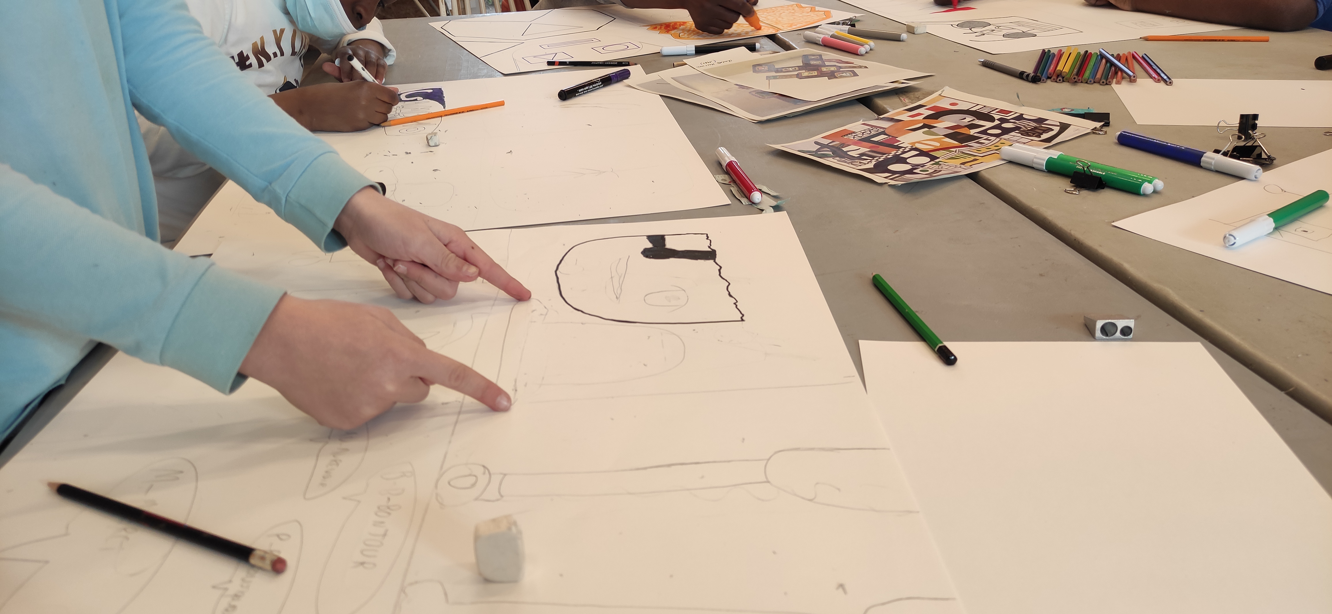 Pour les ateliers 2022 avec les enfants du Centre Socio culturel Au-delà des Ponts, Port du Rhin, nous sommes partis de désirs exprimés à la fin des ateliers de la saison dernière en faisant le lien avec les spectacles Man strikes back et Tout semblait immobile. Par le biais du cadavre exquis, du collage papier puis textile et de lʼécriture dʼhistoires collectives, les enfants ont créé des figures mobiles montées sur des voitures télécommandées.