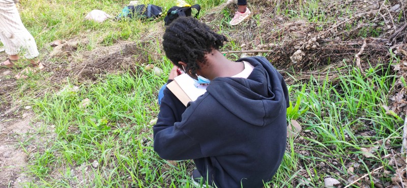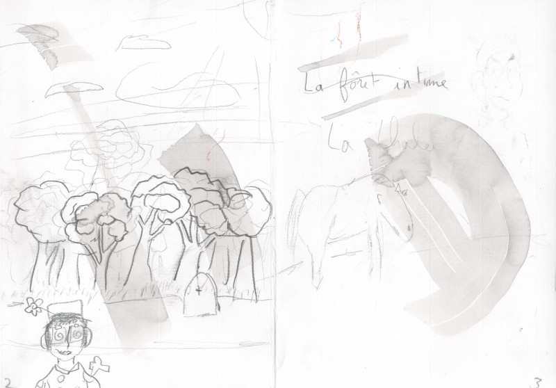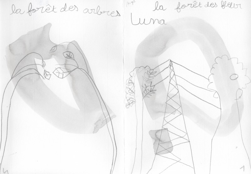 photos 13 à 21: dessins en temps limités accompagnés d'une proposition de nom pour chaque sites visités avec les jeunes artistes du CSC du port du Rhin : Tolga, Ziyadah, Ethan, Thomas, Roland, Zinedine, Angel, Amir, Irène, Emma et Benjamin ©Hyper-forêt