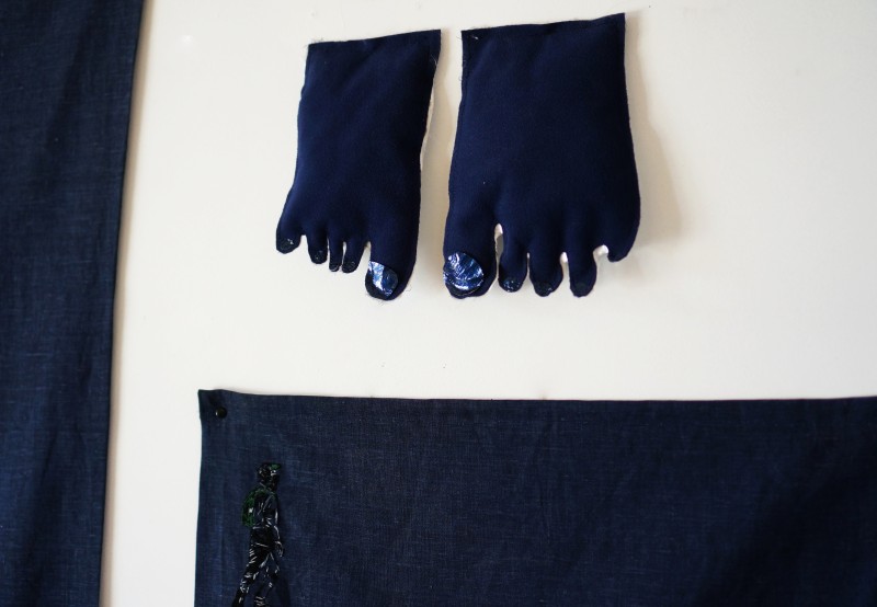 2 eyes, 2 feet and 2 cushions, fabric, batting, variable dimensions