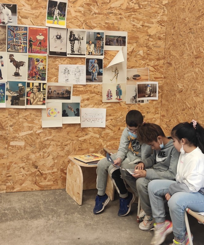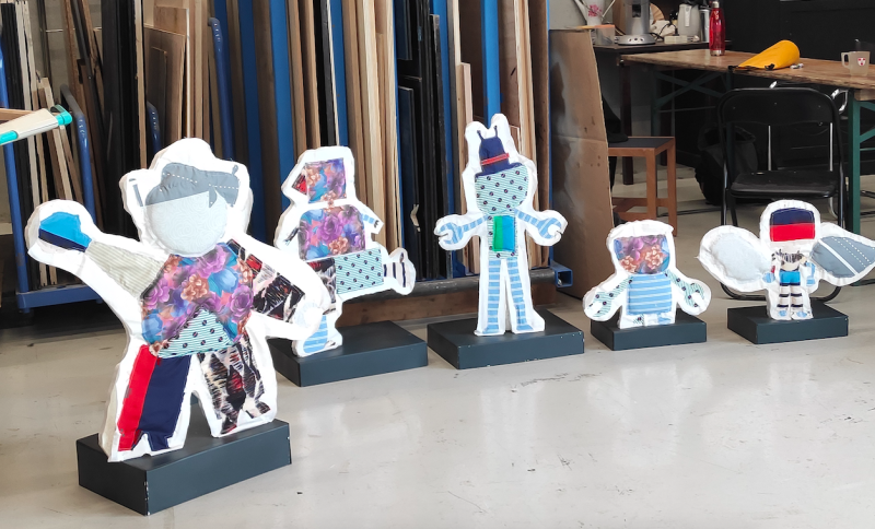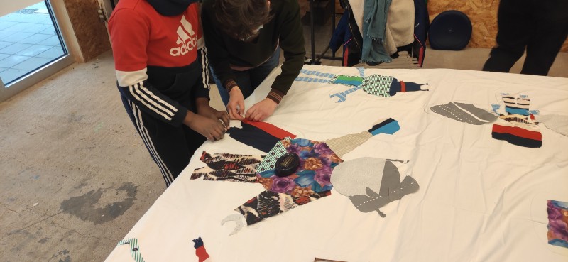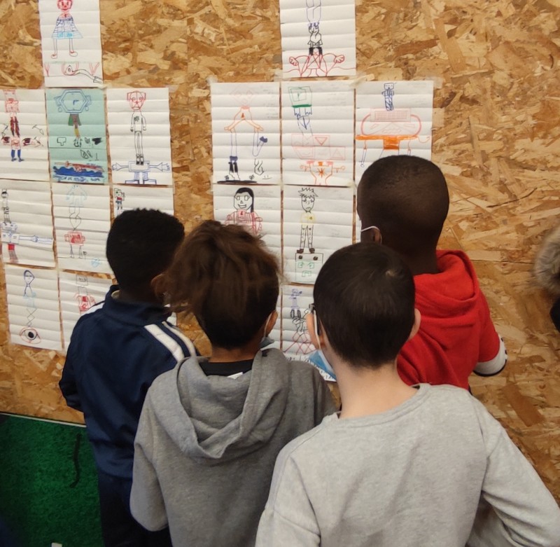 Pour les ateliers 2022 avec les enfants du Centre Socio culturel Au-delà des Ponts, Port du Rhin, nous sommes partis de désirs exprimés à la fin des ateliers de la saison dernière en faisant le lien avec les spectacles Man strikes back et Tout semblait immobile. Par le biais du cadavre exquis, du collage papier puis textile et de lʼécriture dʼhistoires collectives, les enfants ont créé des figures mobiles montées sur des voitures télécommandées.