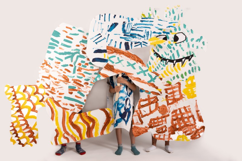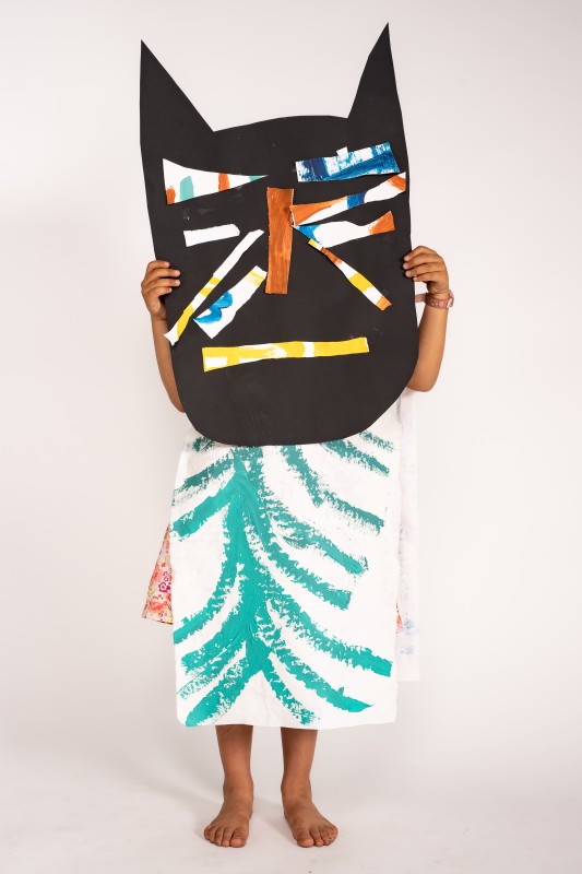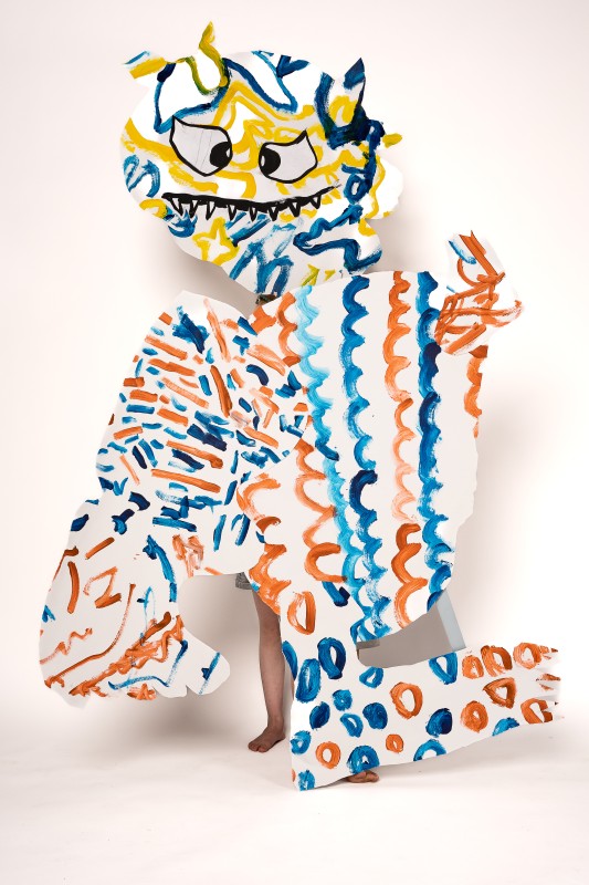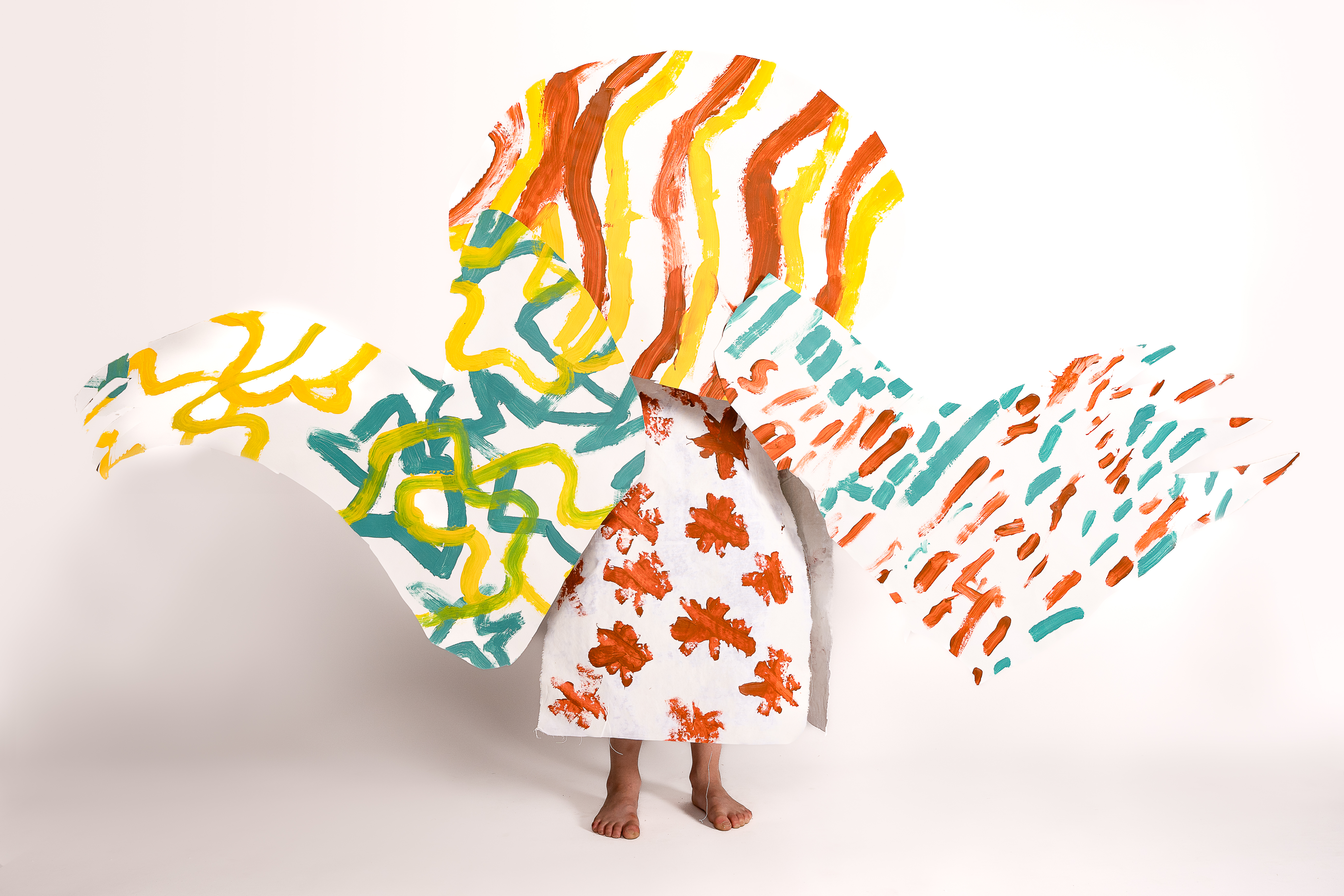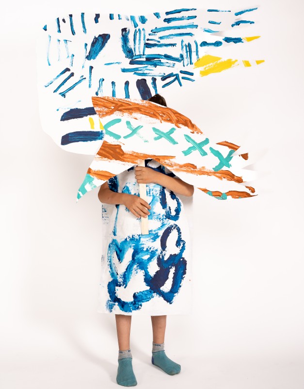 Nous avons ensuite assemblé, collé, scotché et commencé à porter les ensembles (les peintures sur tissu devenant des tuniques).