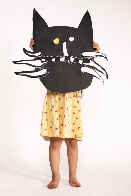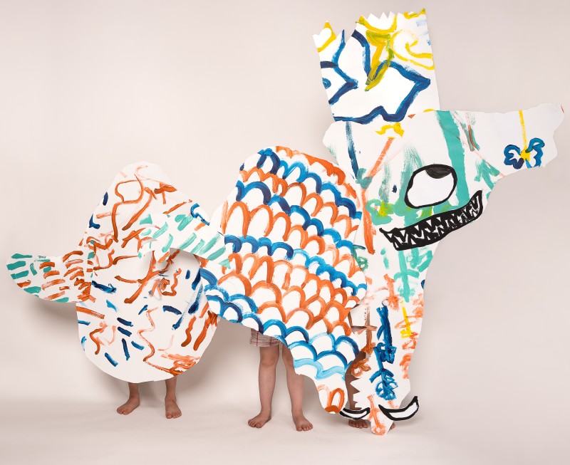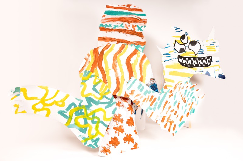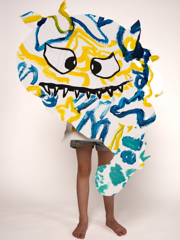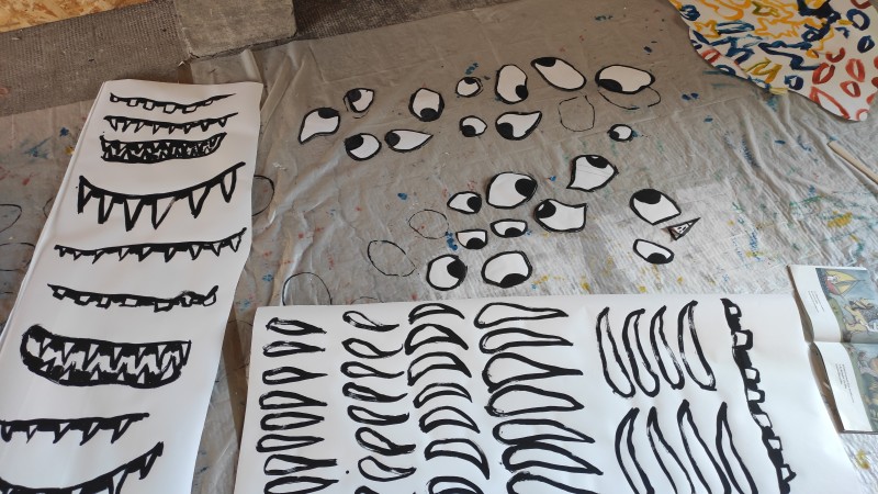 Puis nous avons découpé et donné forme à ces dessins à partir du catalogue de formes issues également du livre: de grands monstres en plusieurs parties, des masques de Max avec des grands yeux et des guirlandes de dents, des voiles de bateau, des pattes griffues.