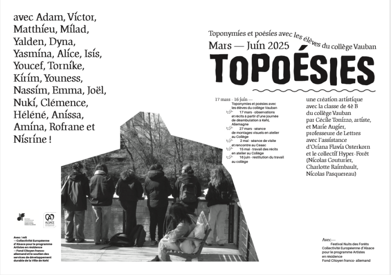 une création artistique avec la classe de 4è B du collège Vauban par Cécile Tonizzo, artiste, et Marie Augier, professeure de Lettres avec l’assistance d’Oriana Flavia Osterkorn et le collectif Hyper-Forêt (Nicolas Couturier, Charlotte Raimbault, Nicolas Pasquereau) - avec Adam, Victor, Matthieu, Milad, Yalda, Dyna, Yassmina, Alice, Isis, Youcef, Tornike, Kirim, Younes, Nassim, Emma, Joël, Nuki, Clémence, Elene, Anissa, Amina, Rofrane, Séléna Ahmad et Nisrine.